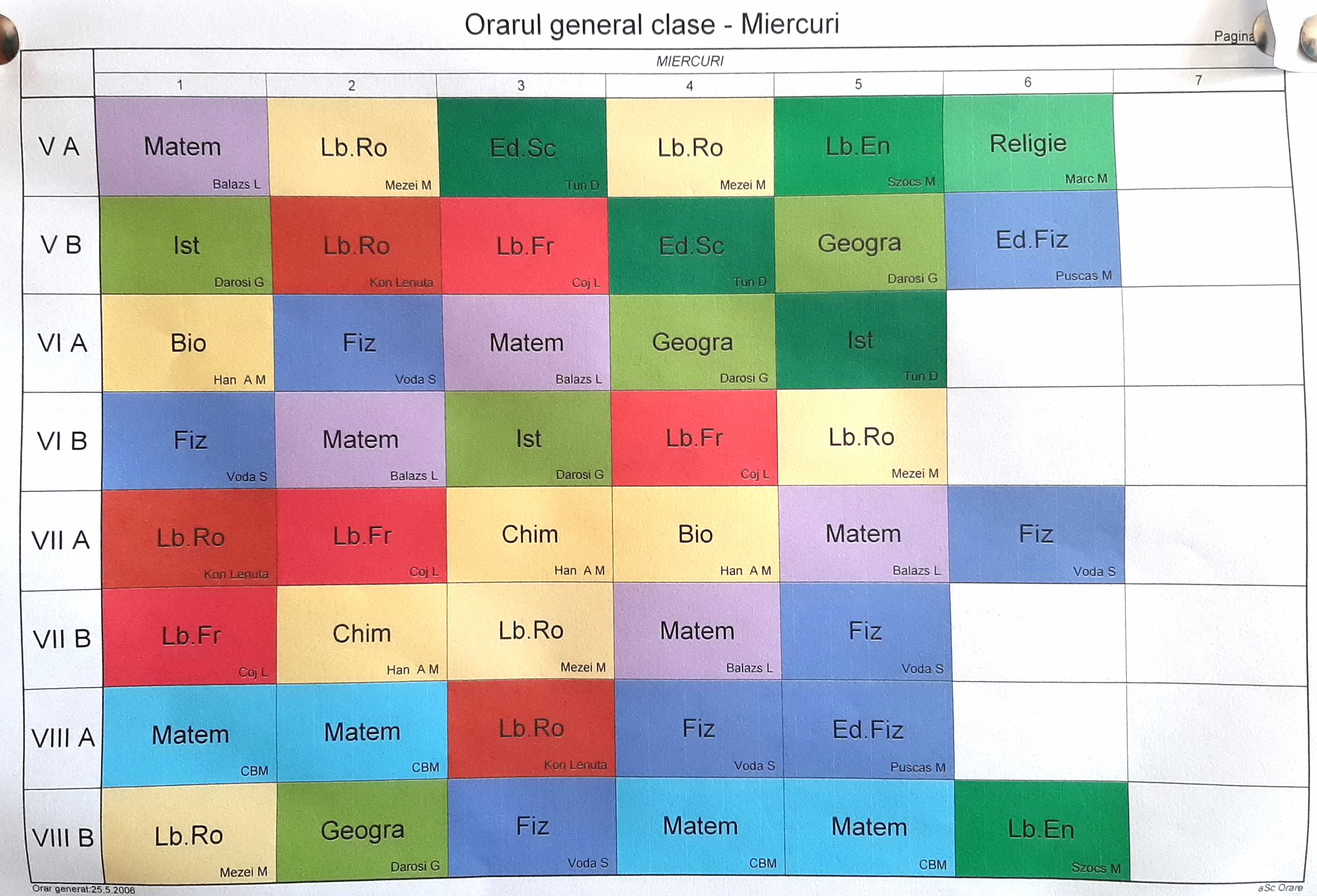 ORAR GIMNAZIU pe cadre didactice