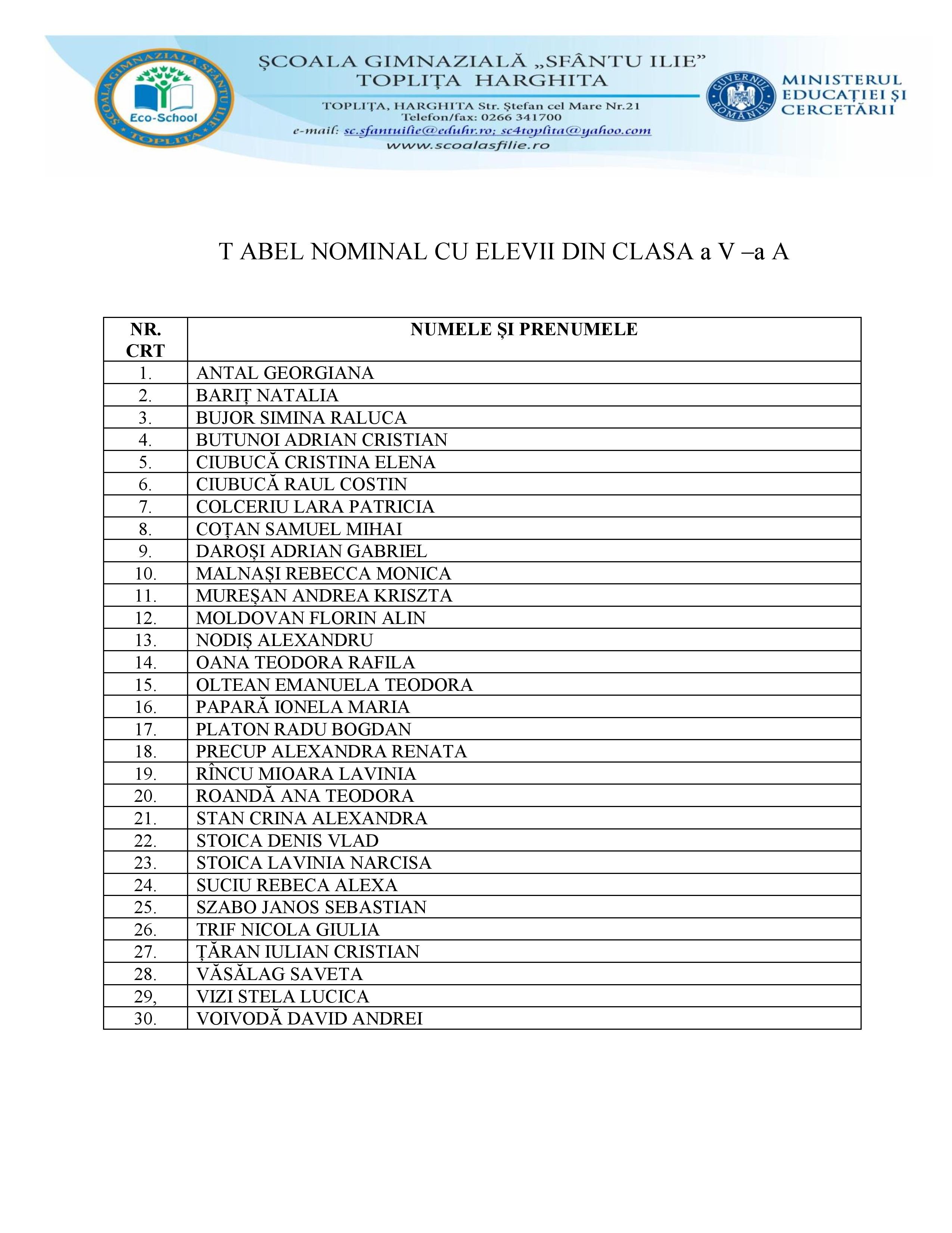 Elevii clasei a V-a A